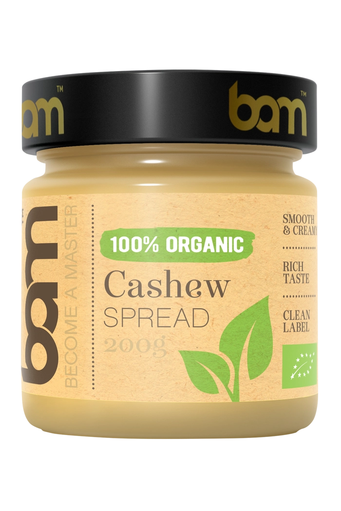 BAM BIO kolekcija v tvojo kuhinjo prinaša najčistejšo moč narave. Naš 100 % BIO namaz iz indijskih oreščkov je pripravljen brez bližnjic – le najboljši ekološki oreščki, nežno praženi do popolnosti. Brez dodanih sladkorjev, olj ali emulgatorjev. Uživaj v žametni teksturi in bogatem okusu, ki naravno obogati tvoj fit jedilnik in poskrbi za dolgotrajno energijo.
