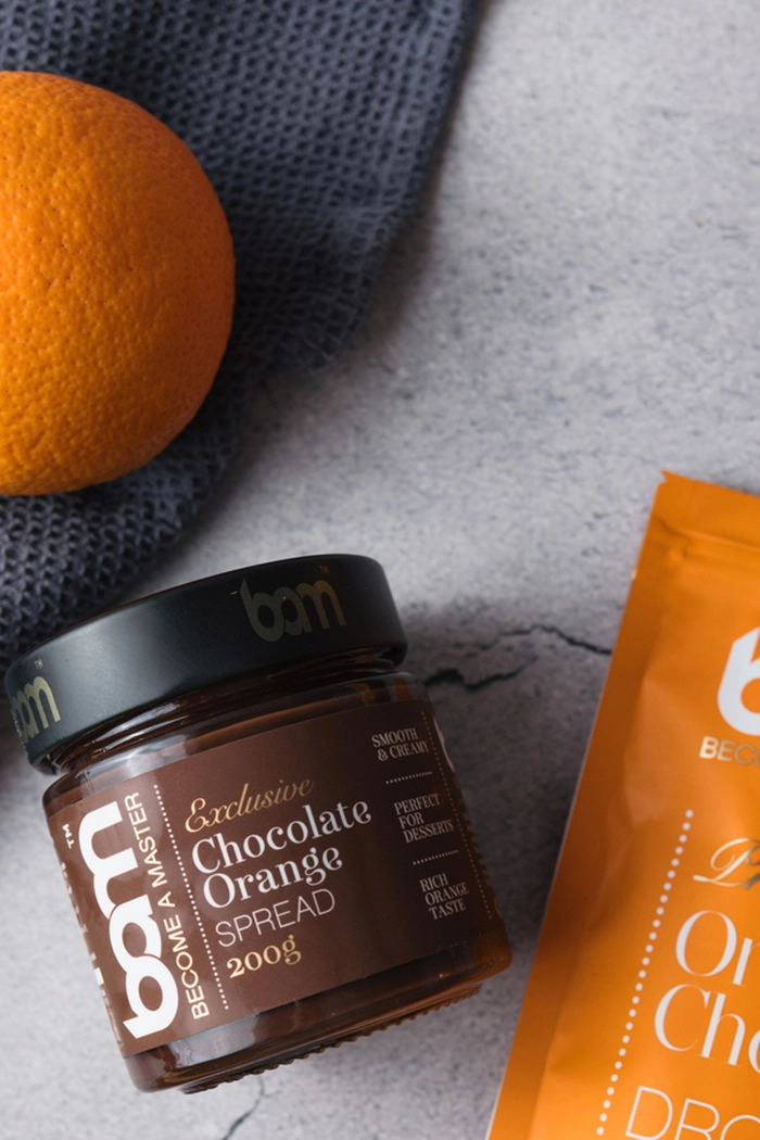 BAM Kakavov namaz z okusom pomaranče prinaša nostalgijo na čisto novi ravni. Navdihnjen s klasičnimi Jaffa piškoti, združuje bogat kakavov okus s svežo aromo pomaranče, ki poskrbi za edinstveno sladico.