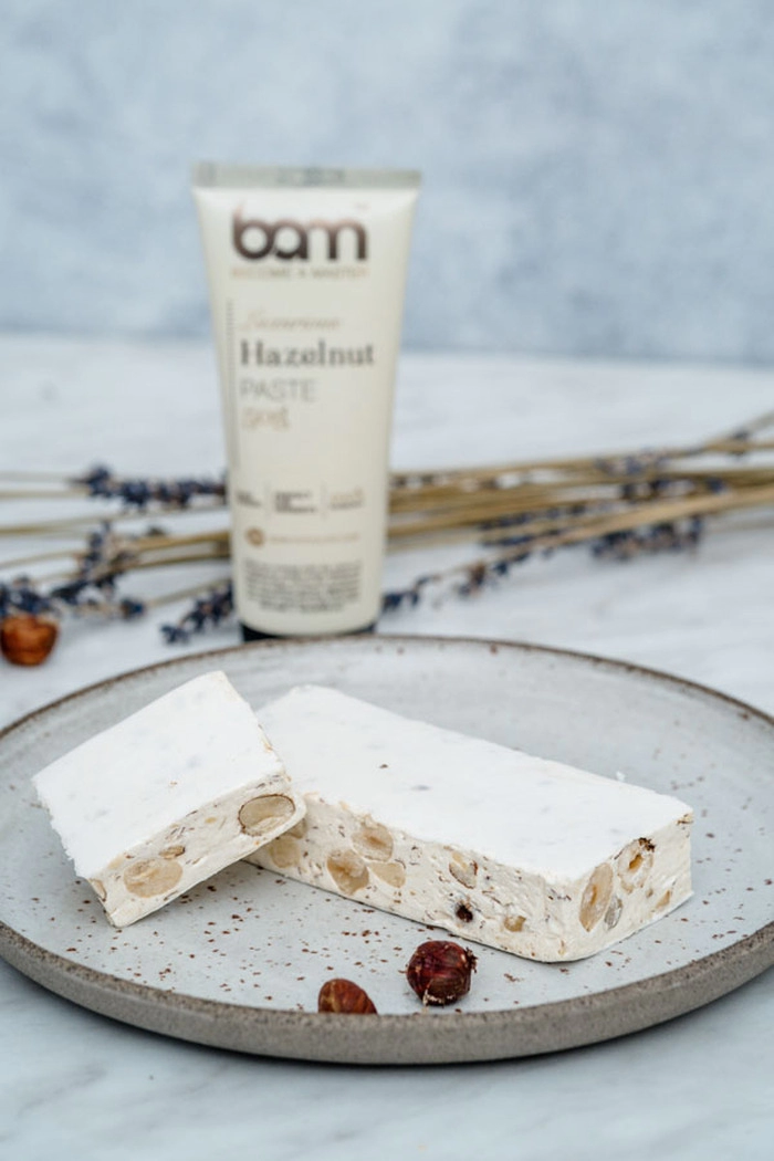 BAM Lešnikova pasta je čista kulinarična uživancija, izdelana iz 100% oluščenih, prepraženih in zmletih lešnikov, ki jih pridobivamo iz Kampanije v Italiji – regije, ki slovi po vrhunskih lešnikih. V tej pasti se združuje edinstveno bogat okus lešnikov in zapeljiva aromatična nota, ki jo le-ti prinesejo.