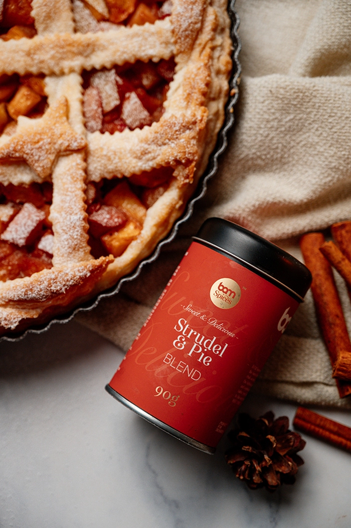 Izboljšajte pripravo tradicionalne jabolčne pite z našo značilno BAM mešanico začimb, ki je bila ustvarjena posebej za to, da poudari tople in pomirjujoče okuse jabolčne pite. Kombinacija cimeta, muškatnega oreščka, začimb in drugih skrbno izbranih začimb je zasnovana tako, da dopolnjuje sladke, sočne okuse jabolk in ustvarja slasten preobrat v tradicionalnih receptih. Vsaka začimba v mešanici je skrbno odmerjena in zmešana in tako ustvari popolnoma uravnotežen profil okusov, ki izboljša okus vaše jabolčne pite in jo dvigne na višjo raven. Poleg uporabe za pripravo jabolčnih pit pa jo lahko uporabimo tudi pri pripravi pečenih jabolk, carskega praženca, jabolčnega sufleja, čežane...