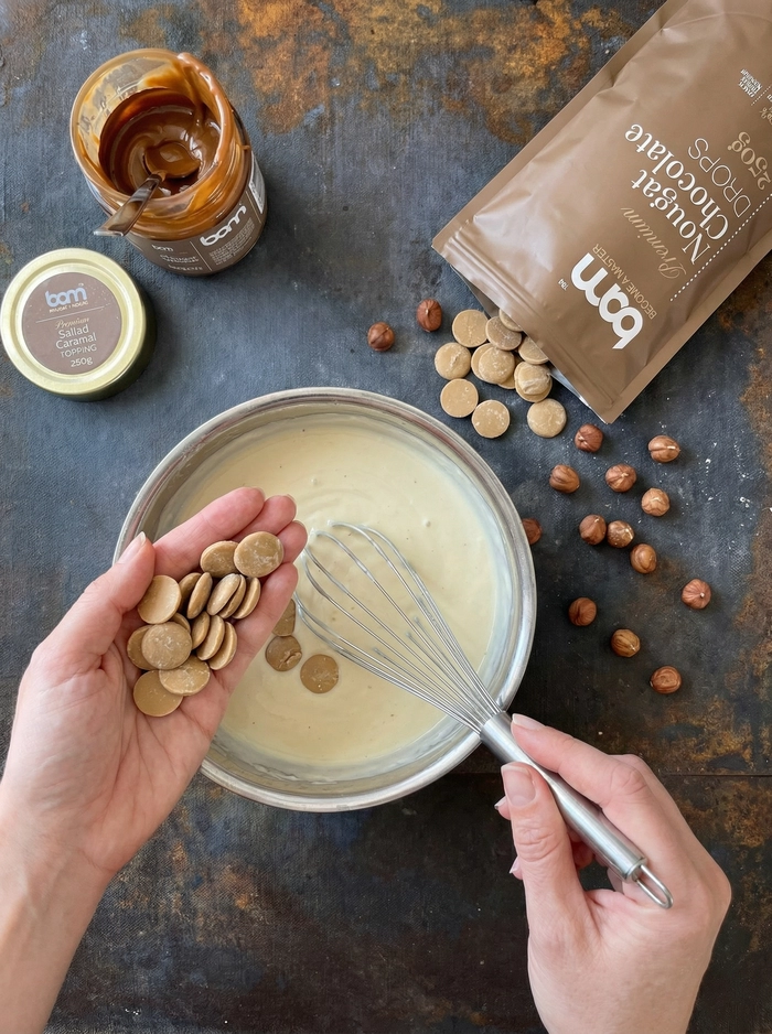 Naj tvoje sladice zasijejo z edinstveno kombinacijo nougata, bele čokolade in hrustljavih lešnikov. Dodaj kapljice v svojo kuhinjo in ustvari popoln sladek trenutek!