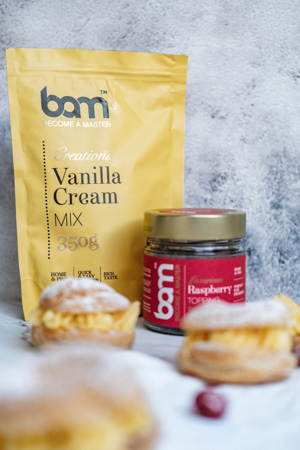 Ustvarili smo paket izdelkov, s katerimi lahko pripravite sočno in okusov polno vanilijevo torto z malinami. BAM mešanica za vanilijevo kremo, BAM vanilijevi stroki in BAM preliva malina tako ustvarijo kombinacijo okusov, s katerimi res ne morete zgrešiti. Postanite mojster slaščic z nami!