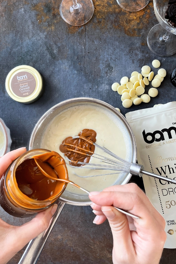 BAM preliv Slana karamela s svojim razkošnim okusom obogati vse čokoladne sladolede ali sladolede z oreščki, odlično se znajde tudi na klasičnem vanilijevem sladoledu. Dodana sol (fleur de sel) še dodatno poudari okus karameliziranega sladkorja in tako skupaj ustvarita preliv, ki je zaradi svoje kremne teksture primeren tako za peko kot za zamrzovanje. Mlečni riž, čokoladni browniji ali palačinke bodo od zdaj naprej bogatejšega okusa. Slano karamelo lahko uporabite tudi kot preliv za torte ali pa hladno pojeste kar na žlico.