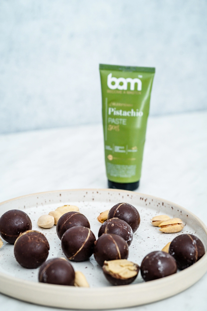 Klasični BAM pistacijin namaz z vsaj 50 % praženih pistacij navdušuje z bogatim okusom in nežno mazljivostjo, zaradi česar je popoln za vsakodnevno uporabo – na kruhu, palačinkah, v pecivih ali kar na žlico. Za vse, ki prisegajo na hranilno vrednost in energijo, je v paketu tudi hrustljavi pistacijin proteinski namaz, obogaten z beljakovinami, ki s svojo teksturo in okusom razveseljuje aktivne posameznike in sladkosnede. Za pravo sladko pregreho poskrbi BAM pistacijin namaz z belo čokolado, ki očara z nežno, a bogato kombinacijo pistacije in čokolade ter je kot nalašč za trendovske sladice. Piko na i doda 100 % pistacijina pasta – vrhunska surovina za vse, ki želite ustvarjati brez kompromisov in s polnim okusom prave pistacije.