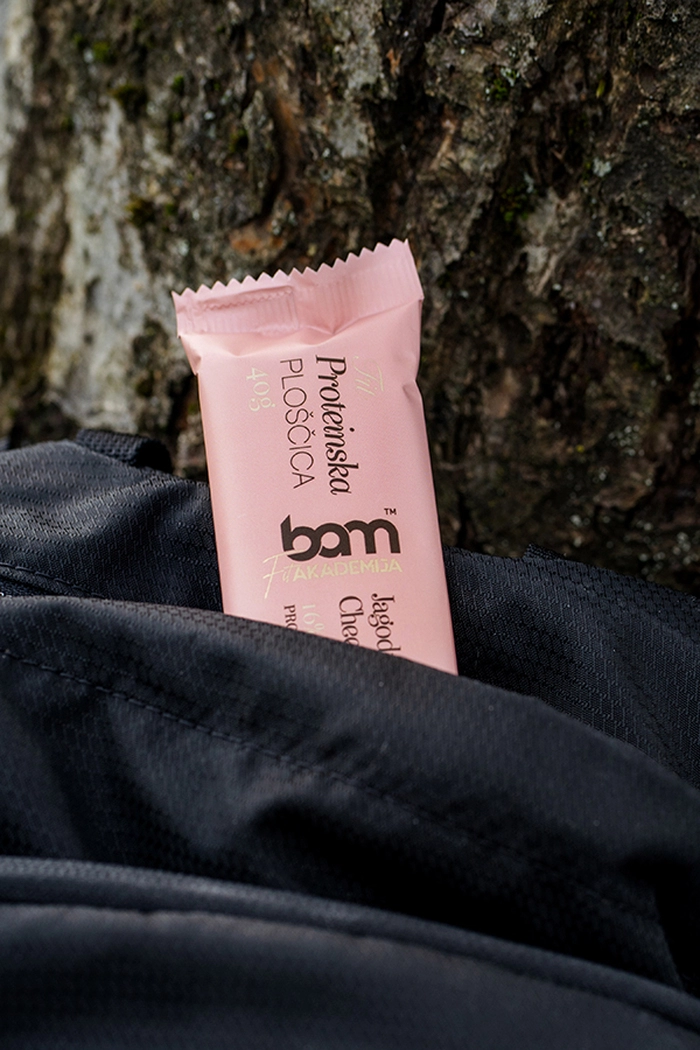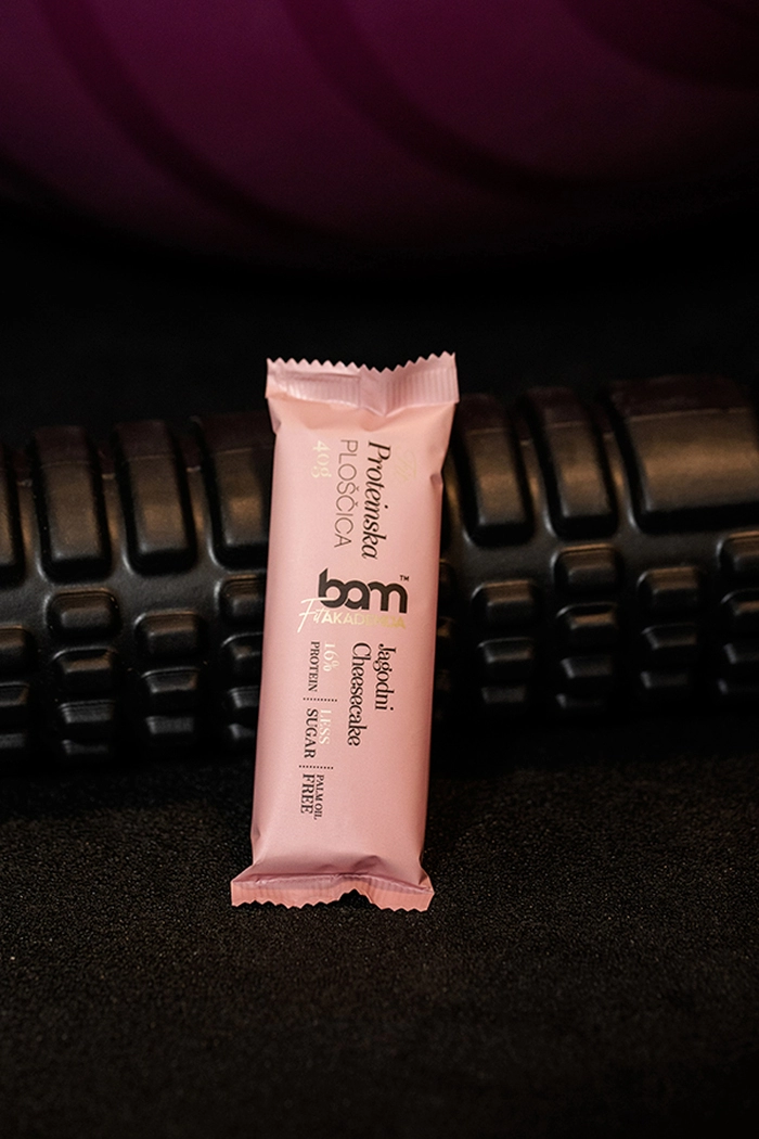 BAM proteinska ploščica jagodni cheesecake je idealen prigrizek za trenutke, ko potrebuješ hranilno energijo na poti.