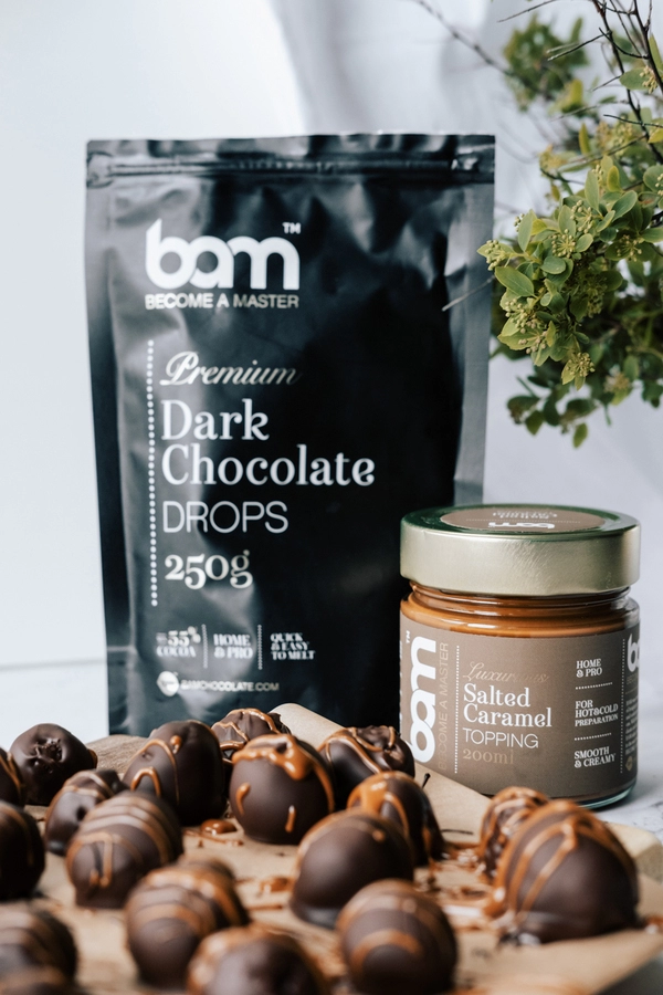 BAM je vrhunska linija izdelkov ustvarjena z vizijo, da premium kvaliteto čokolade in profesionalne izdelke za peko približamo tudi domačim ustvarjalcem slaščic. BAM izdelki so namenjeni vsem, ki obožujejo ustvarjanje z visoko kvalitetnimi sestavinami in prefinjenimi okusi tudi za domačim kuhinjskim pultom. Postanite mojster slaščic z nami!