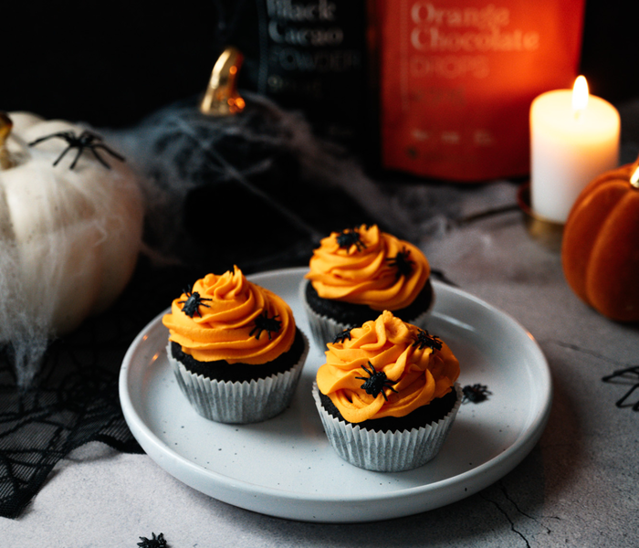 Kremo nabrizgajte na kolačke in dodajte strašljivo dekoracijo.