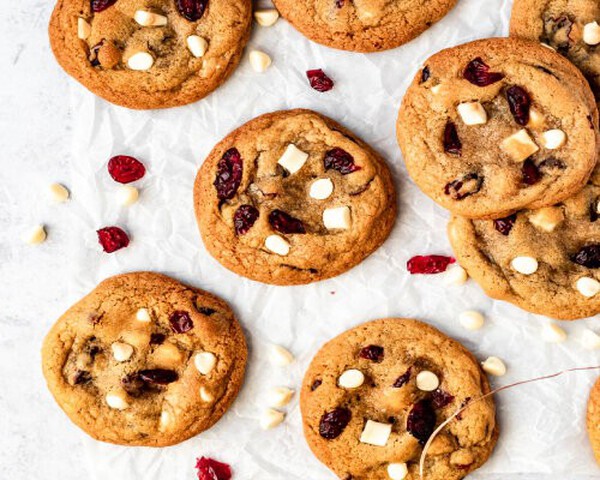 Ti piškoti z belo čokolado in brusnicami so neverjetno mehki, polni koščkov bele čokolade in posušenih brusnic. Popolni za vaš praznični pladenj s piškoti! Osnova za testo za piškote z belo čokolado in brusnicami je podobna tisti, s katero lahko pripravite tudi piškote s čokolado. K testu za piškote vedno dodajte tudi rjav sladkor, ker piškotno testo navlaži in jih tako naredi še okusnejše. K piškotom smo tokrat dodali tudi BAM belo čokolado, ki se odlično ujame s kiselkastim sadjem kot so brusnice, maline, gozdnimi sadeži ali citrusi.