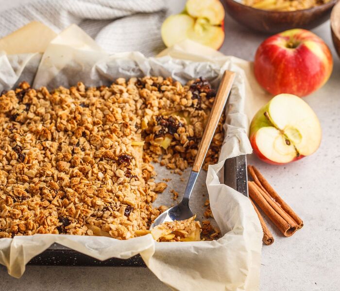 Jabolčni drobljenec nas s svojim omamnim vonjem cimeta in pečenih jabolk spomni na domačnost in udobje, ki ga prinašajo družinski trenutki ob skodelici vročega čaja.