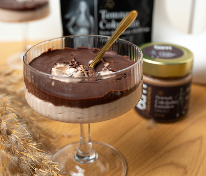 Če obožuješ okus Kinder Country, bo ta riževa sladica prava zate! Riž, vroča voda in BAM Lešnikov beljakovinski namaz s kakavom se v mešalniku spremenijo v kremasto osnovo, ki navduši s svojo gladko teksturo. Preliješ jo s stopljeno BAM Temno čokolado brez dodanega sladkorja, ki poskrbi za popolno ravnovesje okusov. Sladico razporediš v kozarčke in jih za vsaj pol ure ohladiš v hladilniku, da se okusi povežejo in tekstura strdi.